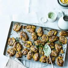 Gequetschte Und Gebackene Fruhkartoffeln Servieren Wir Mit Sonnenblumenkernen Und Frankfurter Grune Sauce Quetschkartoffeln Rezepte Lebensmittel Essen