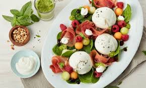 Melone Und Parmaschinken Mit Burrata Und Minzpesto Parmaschinken Minzpesto Vorspeisen Rezepte