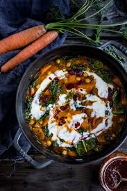 Tunisian Chickpea Stew With Carrot And Tops Turmeric Kale And Quick Harissa Healthy Vegetarian Dinner Vegetarian Stew Vegetarian Recipes Dinner Healthy