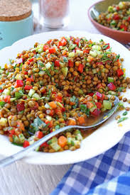 Linsensalat Mit Mango Und Paprika Linsensalat Linsensalat Rezept Lachs Gerichte