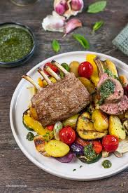 Zarter Lammrucken Mit Gremolata Auf Gebratenen Ochsenherztomaten Mit Grunen Bohnen Rezept Lammrucken Rezept Lammkarree Lammrucken
