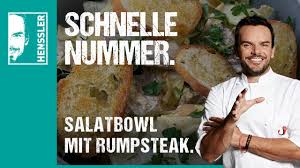 Schnelles Salatbowl Rezept Mit Rumpsteak Auf Gerostetem Brot Mit Senfdressign Von Steffen Henssler Youtube Henssler Tomaten Suppe Tomatensuppe
