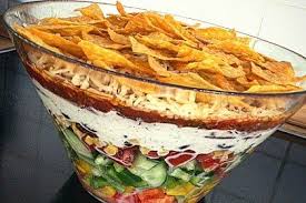 Dieser 7 Lagige Taco Salat Ist Ein Einfaches Rezept Fur Partys Voller Leckerer Dies Layered Taco Salads Mexican Food Recipes Easy Mexican Salad Recipes