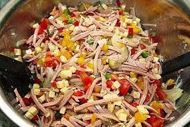 Gemischter Wurstsalat Mit Kase Paprika Eiern Und Rezept Wurstsalat Wurst Kase Salat Wurstsalat Rezept